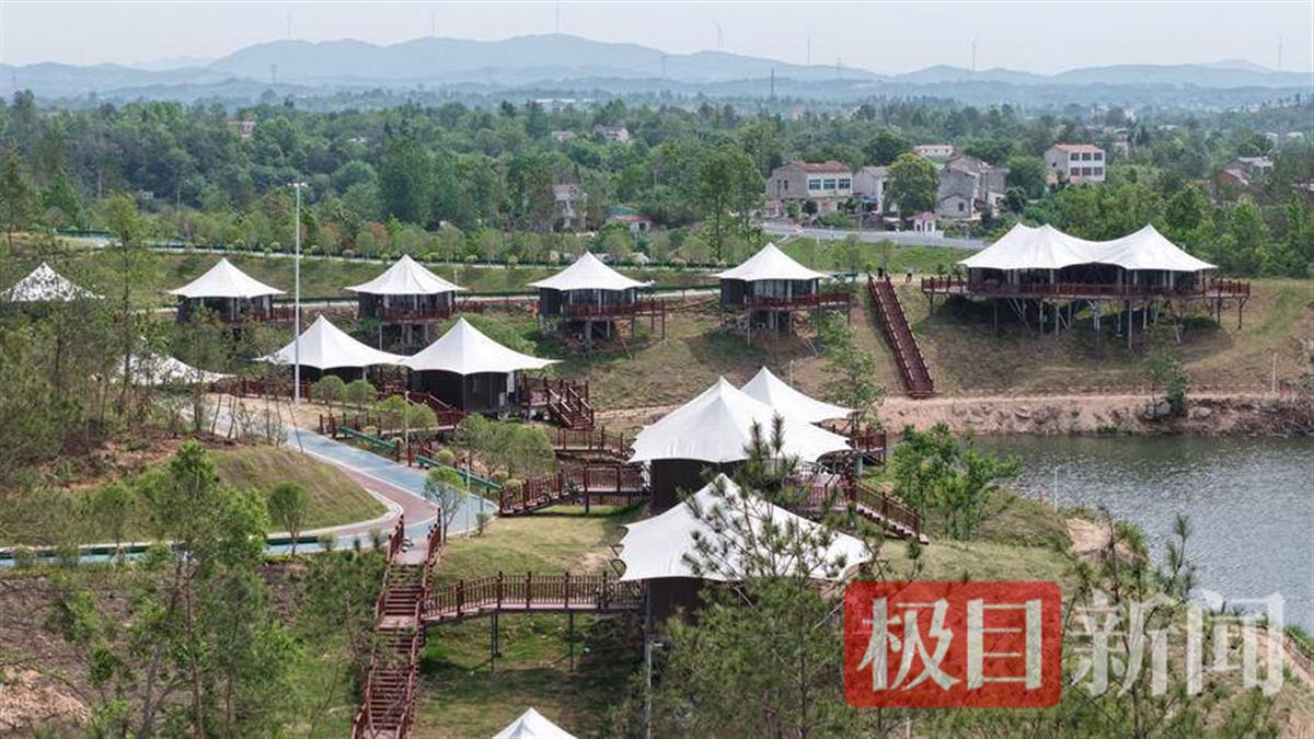 “五一”假期,大悟刘集镇伴山金鼓·茶乡营地景区盛装开园迎客,茶乡露营、水上游船、水幕电影、激光秀等场景跨界联动,吸引众多外地游客前来打卡。