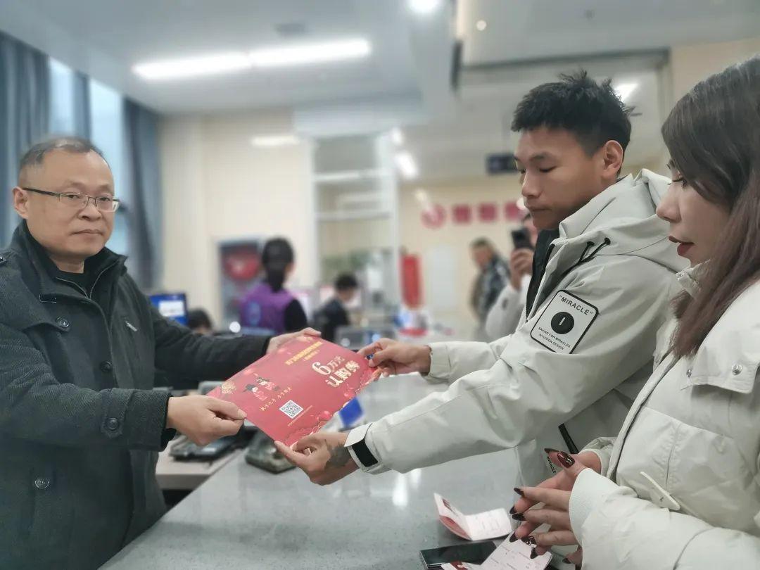 3月3日,小板镇姚胡村谢虎(右二)领到天门市首张结婚登记购房认购券。