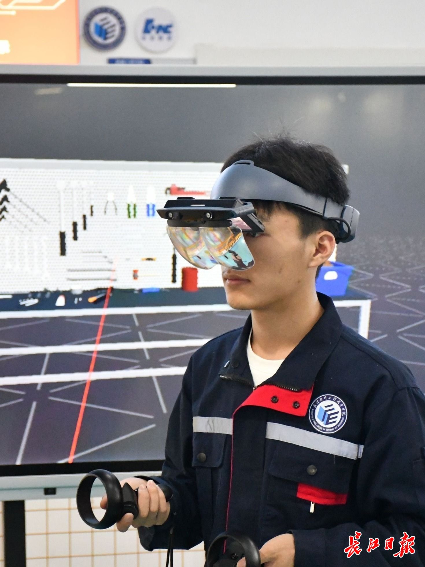 武汉软件工程职业学院学生向嘉宾展示工业机器人虚拟仿真技术。长江日报记者 陈晓彤 摄
