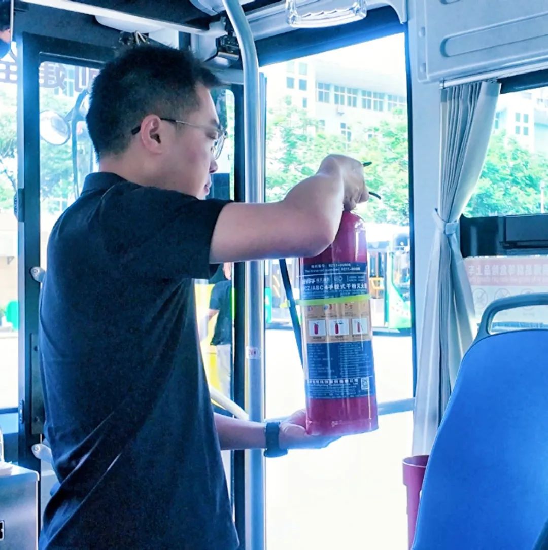 在黄石港万达公交枢纽站内,我化身安全员,灭火器压力值、安全锤是否齐全、驾驶位监控角度……我仔细检查,这些乘客看不见的细节,却是公交安全的底线。