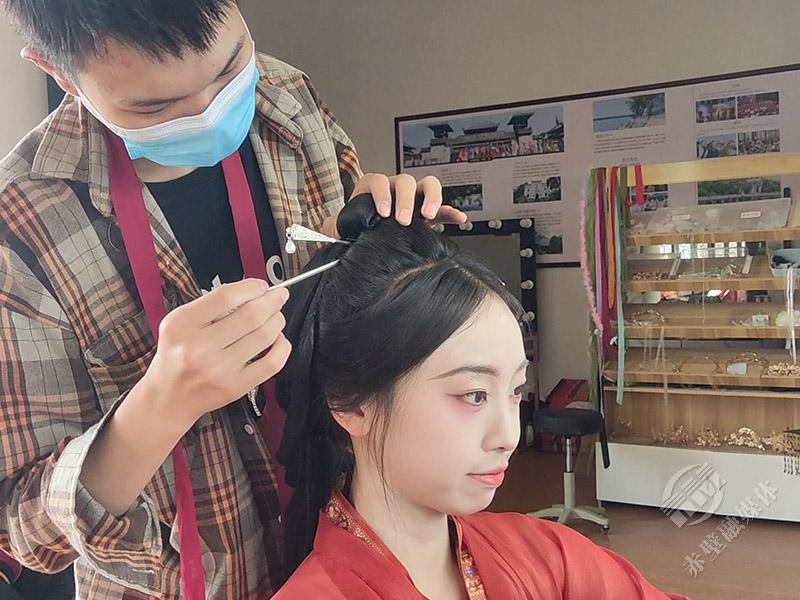主持人夏雨薇:今年古战场提档升级后可谓是大不相同,新的旅游线路有哪些惊喜呢?今天我们将从一秒入戏的旅拍店开始,带大家去体验现场变装的快乐。换上这一身古装,踏入千年古战场。