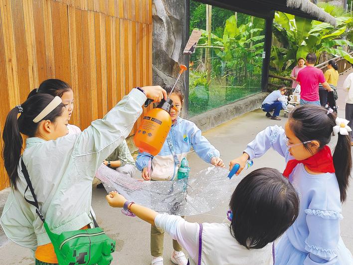 参加活动的小志愿者,在武汉四美塘公园学习粘贴“防鸟撞窗花”。(湖北日报实习生 潘雅芳 摄)