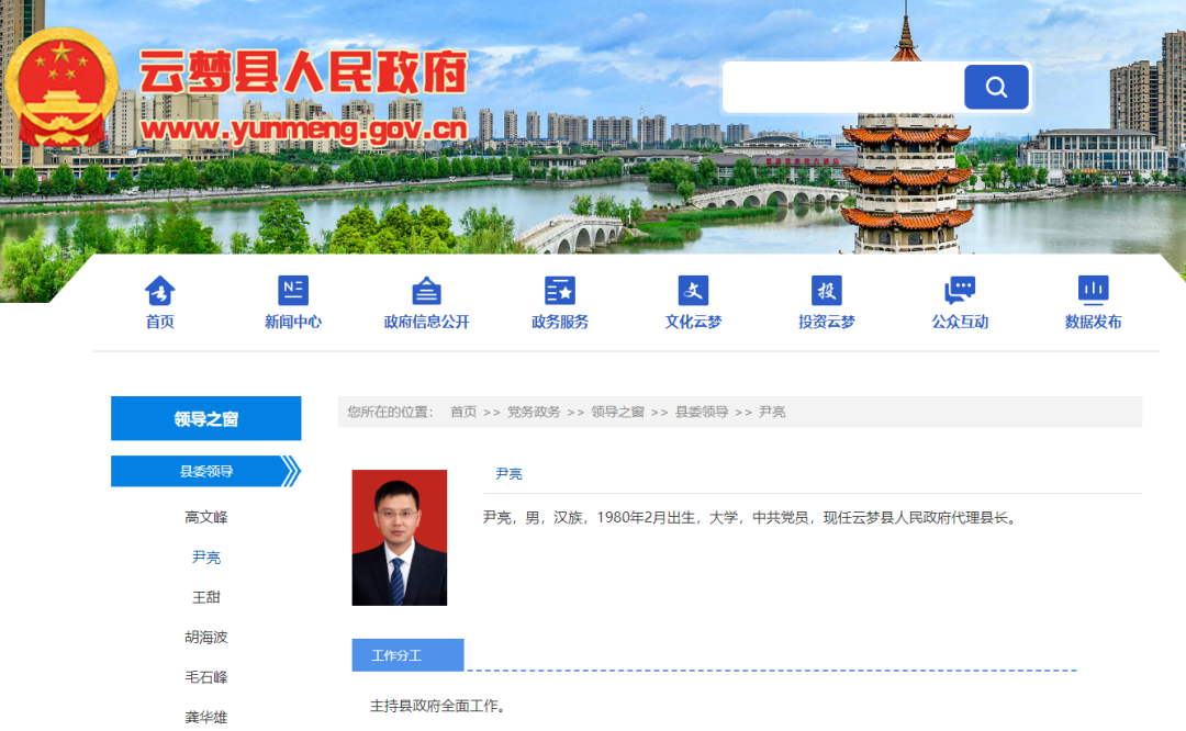 现任云梦县委副书记、县人民政府副县长、代理县长。