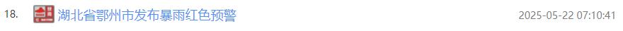 5月22日8时51分,据@湖北气象 最新消息,目前省内较强回波位于十堰、荆门、仙桃、荆州、襄阳、鄂州、黄冈等地,出行的公众注意避开积水路段,小心慢行!