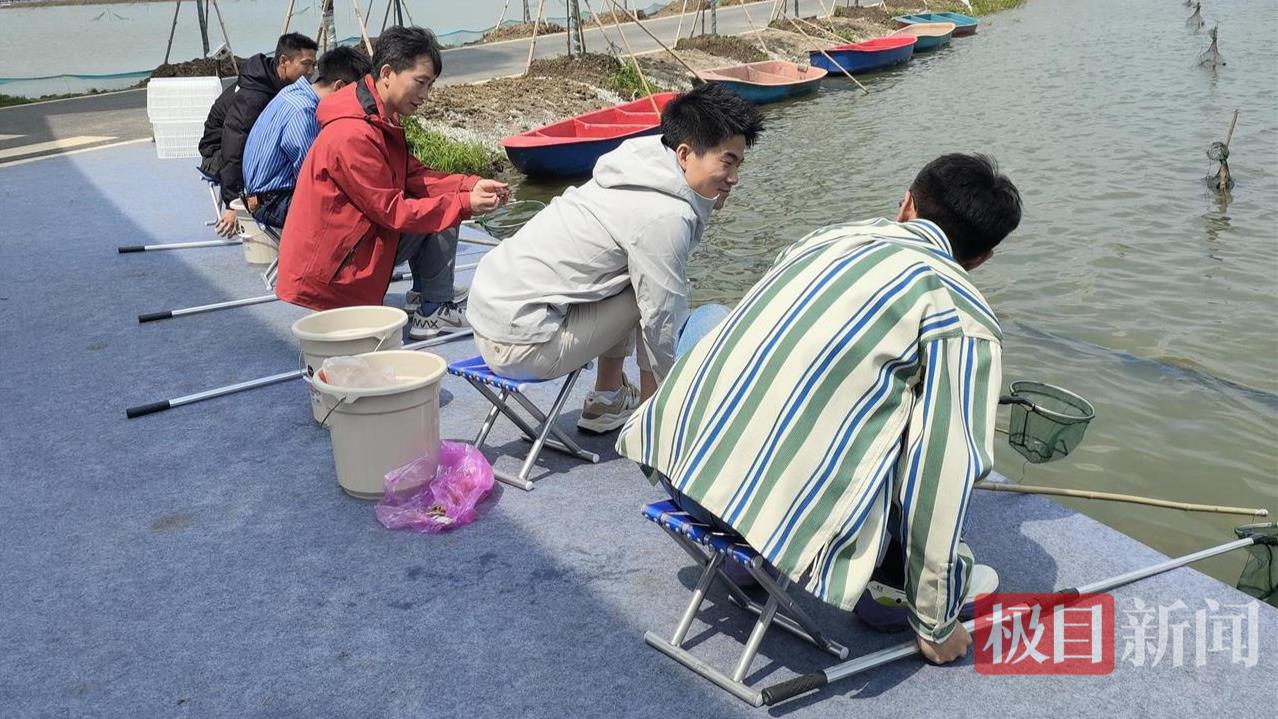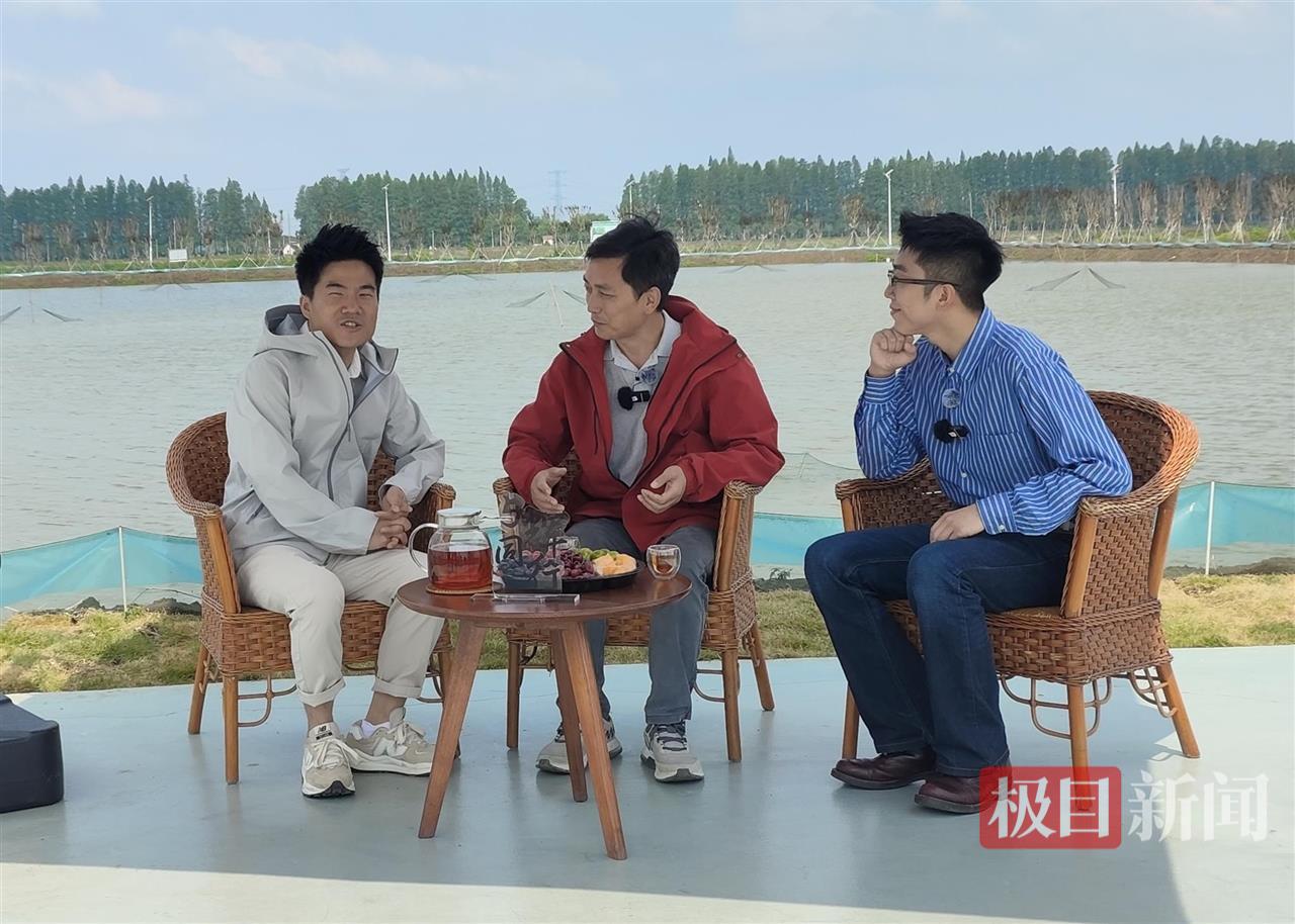 上午10时左右,董宇辉与搭档汉森身着防水服踏入潜江万亩虾田,在虾农指导下体验钓虾、分拣等环节。