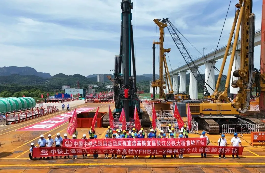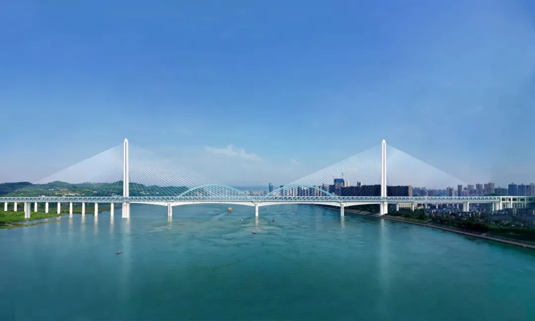 宜昌长江公铁大桥是宜涪高铁全线的关键控制性工程,首创四索面四主桁钢桁梁结构新体系,首座独柱式钢混组合混合桥塔的铁路斜拉桥,是世界首座铁路在上、公路及轨道交通在下的最大跨度三用钢桁梁斜拉桥。