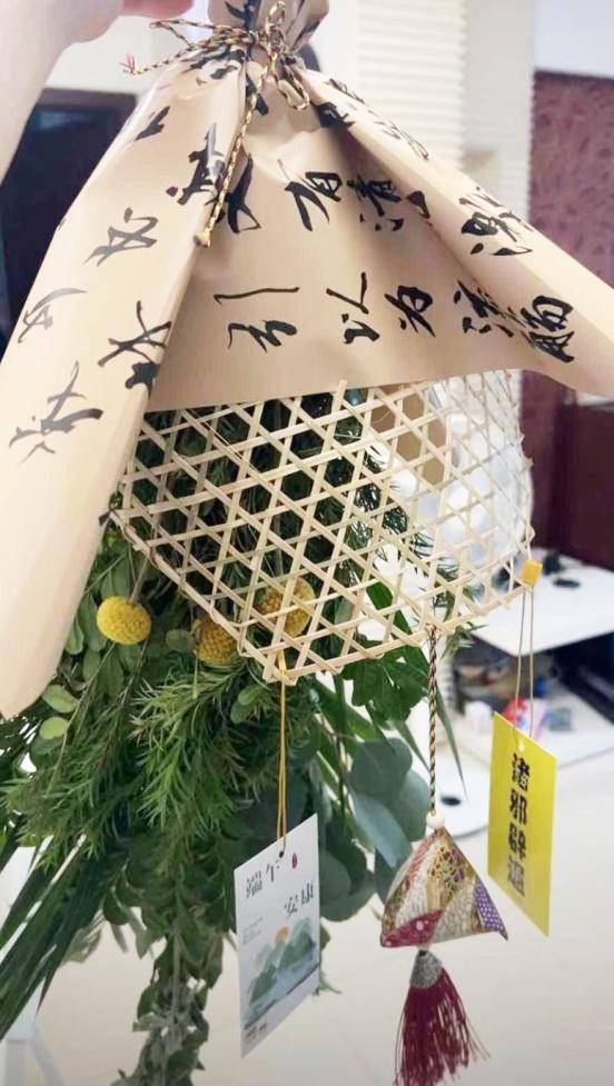 据了解,目前抖音等平台上有艾草制作的精美香囊、小灯笼、迷你挂件等。许多花店的艾草花束会搭配菖蒲、黄金球,以及葫芦、扫帚、香包等配件,经过创意组合搭配,既突出节日气氛,又有端午节寓意,美观且具装饰作用。