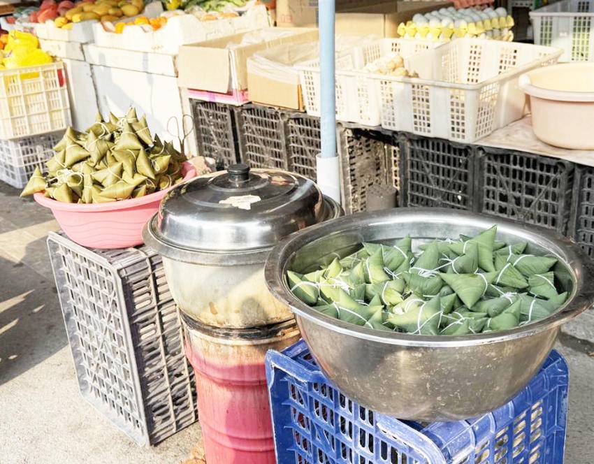 虽说市场上粽子品种繁多,但很多市民还是倾向选择现包现煮的手工粽子。