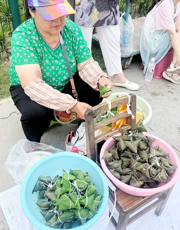上午8点,63岁的李阿姨已经忙得不可开交。她的手工粽子摊位前热气蒸腾,青绿的粽叶翻飞如蝶,空气中弥漫着糯米与粽叶的清香。“现包现煮”的手艺不仅成了不少市民的节日念想,也让粽子融入了邻居们一年四季的餐桌。