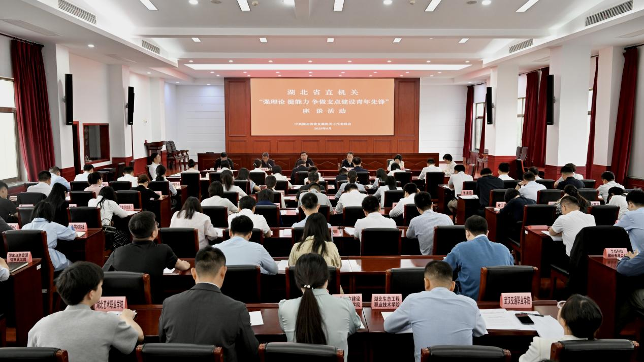 4月27日上午,省直机关“强理论 提能力 争做支点建设青年先锋”座谈活动在汉召开。共青团湖北省委书记刘治田、省委直属机关工委副书记廖峰出席活动并讲话,省委直属机关工委二级巡视员张新民主持活动。