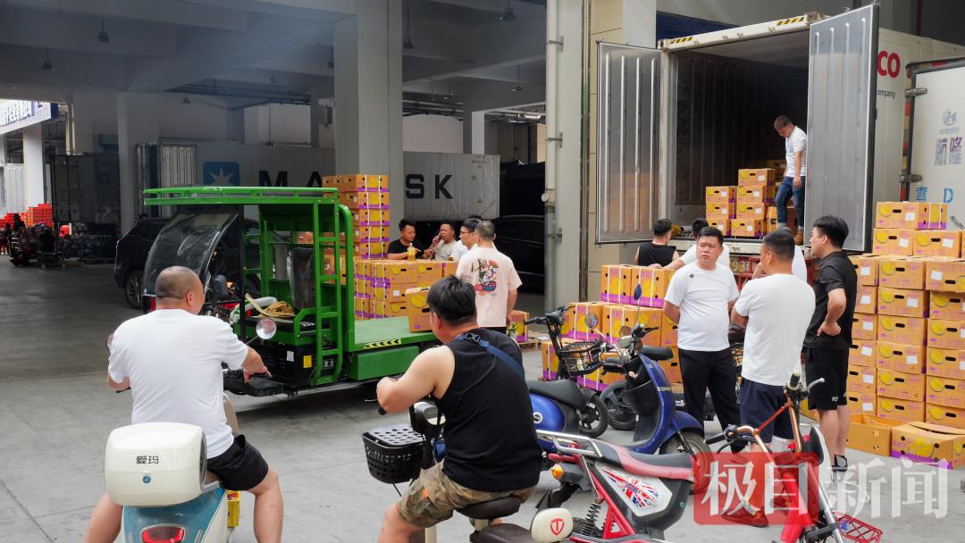 尽管进口成本受物流、关税等因素影响,但得益于孝感首衡城规模化采购和高效分销,终端零售价保持稳定,部分品种价格较年初回落30%,金枕榴莲A果一个多月前还是1100元一箱,现在到了750元左右一箱,吸引大量消费者和采购商。
