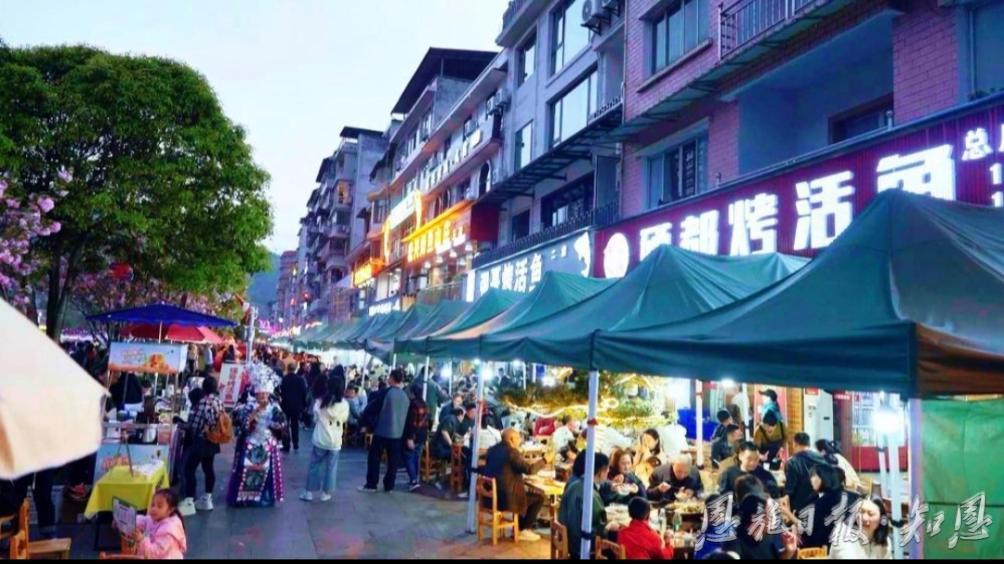 作为仙山贡水旅游区的核心区域,宣恩烤活鱼美食街将自然景观与城市生活相融合,通过景街联动、“食”力出圈、“夜”态焕新,打造出独具特色的美食IP。去年,街区带动旅游收入突破38.85亿元,并在今年3月斩获全省“十大必打卡荆楚美食街”殊荣,成功探索出一条以美食为媒介、以文旅为引擎的高质量发展之路。