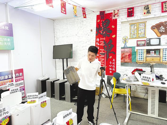 主播正在为二手小家电带货。(湖北日报全媒记者 李源 摄)