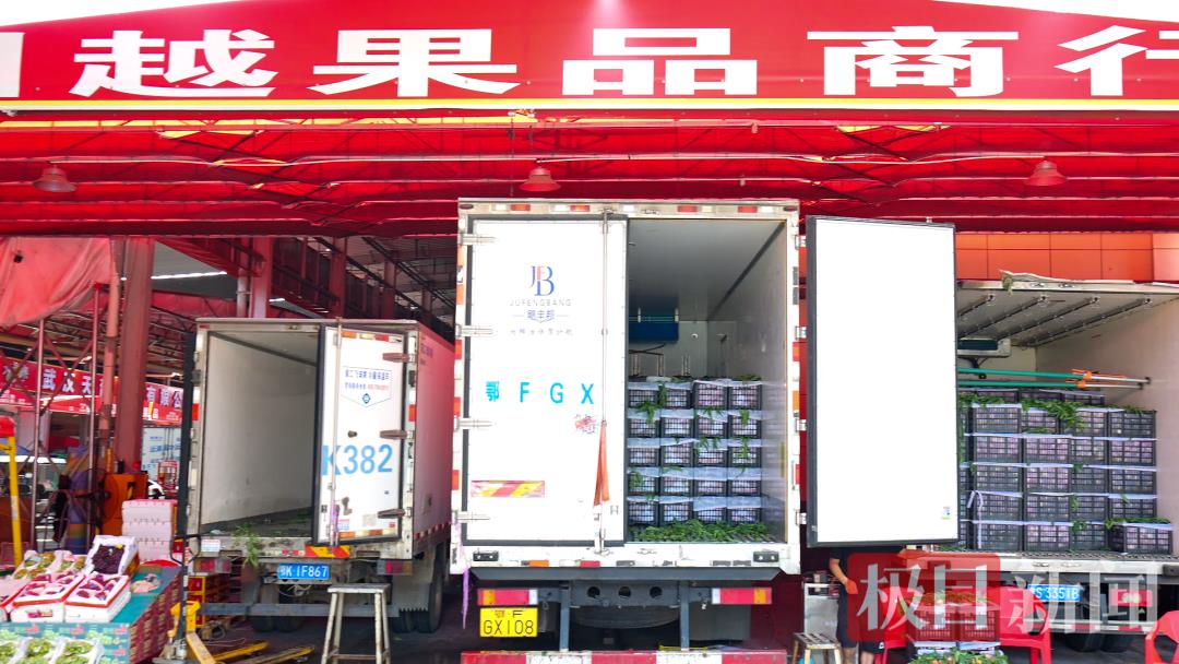 衡俊源是市场内桃子售卖大户之一,主要供应省内大型连锁超市,出货量稳定。档口上桃子的火爆交易带动了上游种植端的提质升级,种植面积从去年的6万多亩大幅提升到7万多亩,从基地到市场有固定运输专线,以提升物流效率,减少货损率。