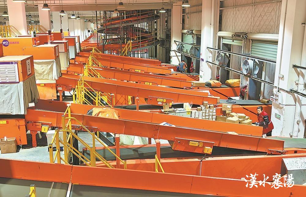 圆通襄阳智创园内,上万件快递通过数字化无人设备自动扫描、分拣。