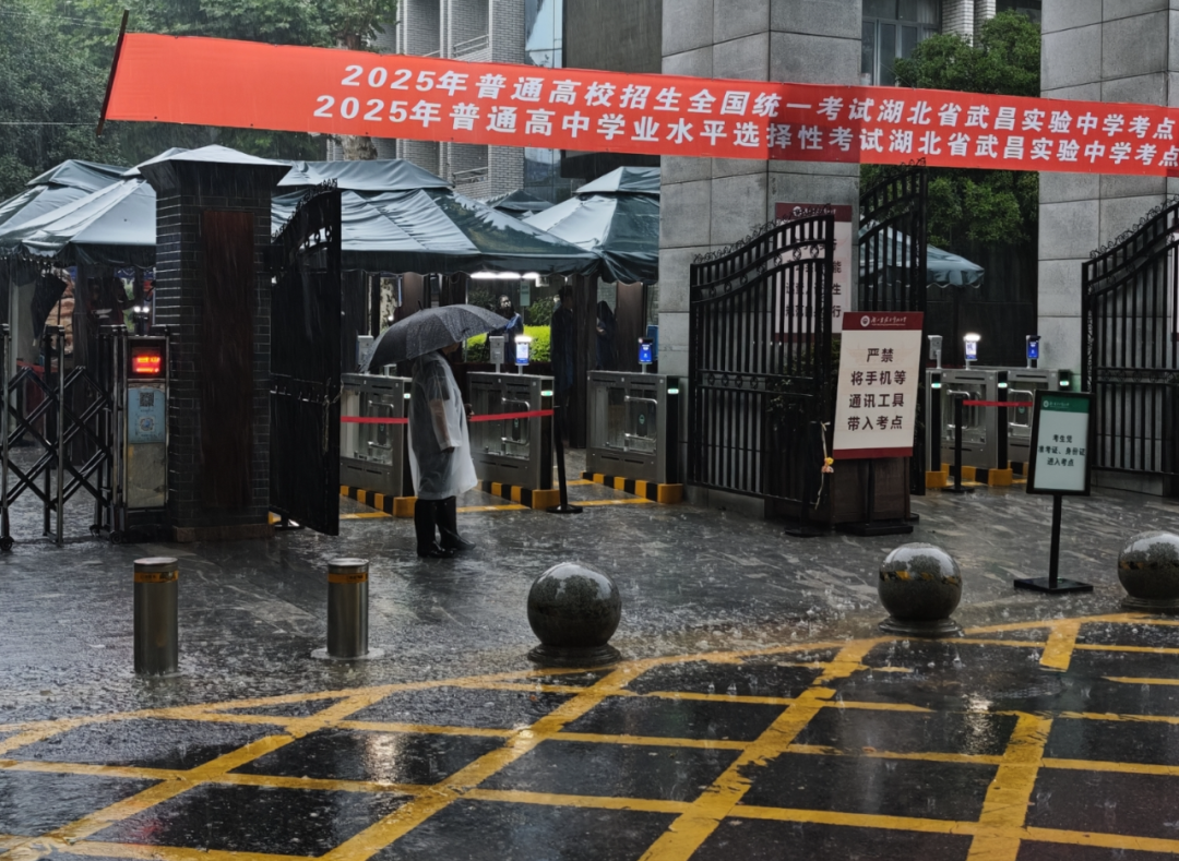 6月8日早上7点,记者在武汉二中考场门口看到,公安、交警、环卫、水务等工作人员已在现场值守。