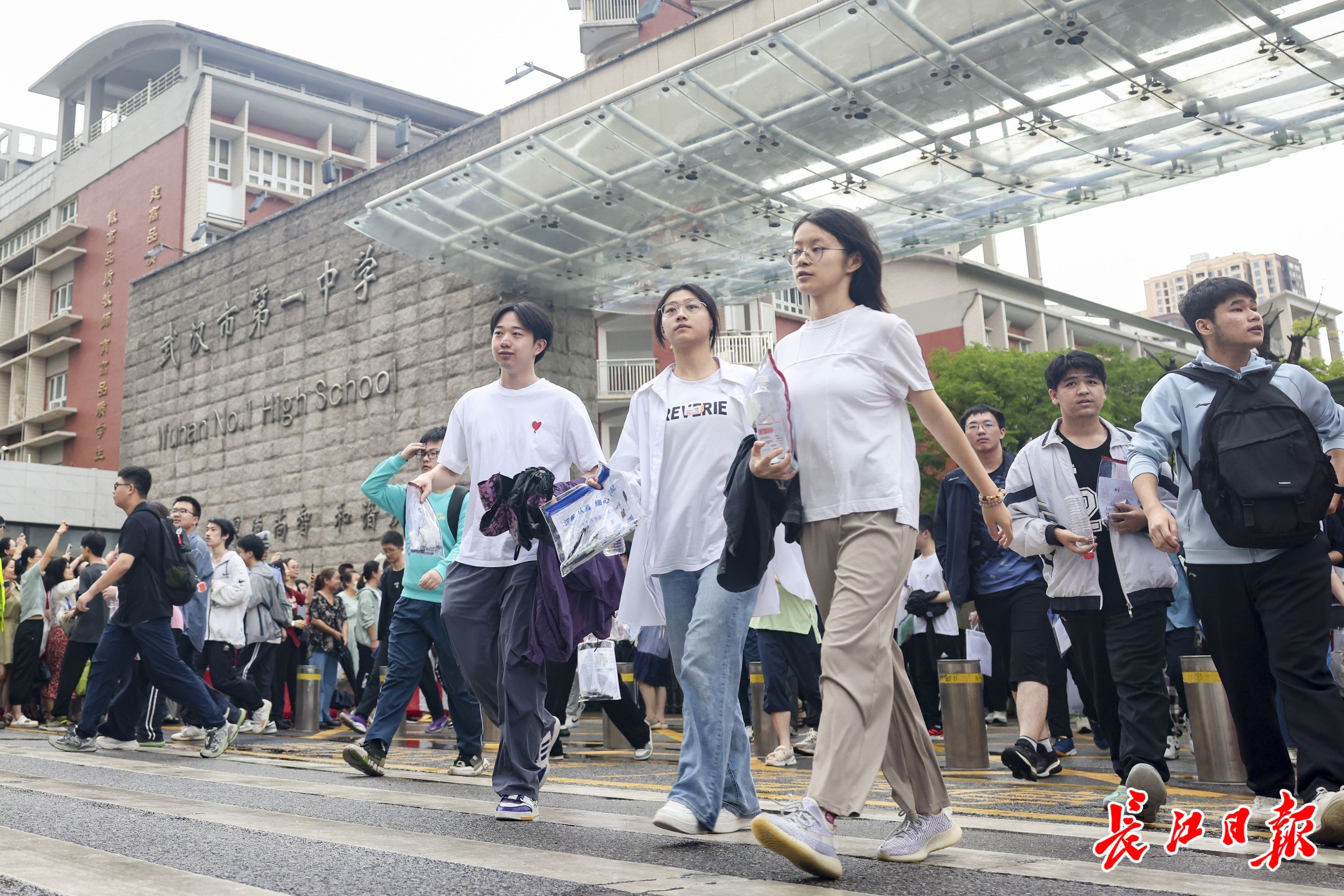 6月7日,武汉一中考点,2025高考语文考试结束后,考生们大步走出考场。记者 胡冬冬 摄