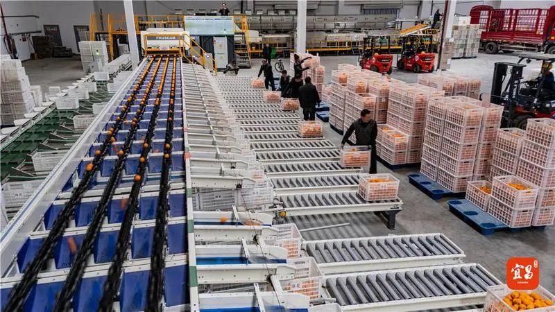 秭归县维楚云仓内智能分拣设备正在分拣脐橙。通讯员彭强 摄