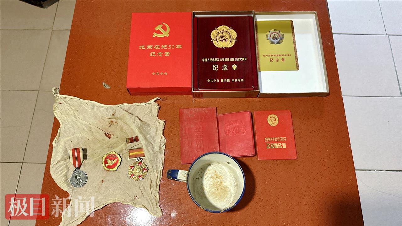 6月6日,极目新闻记者前往湖北长阳土家族自治县榔坪镇,拜访这位亲历过重大历史事件的百岁老人。他的儿子邓祖建拿出父亲的退伍证明、立功证书、抗美援朝纪念章等材料,这些泛黄的物件记录着老人非同寻常的烽火过往。