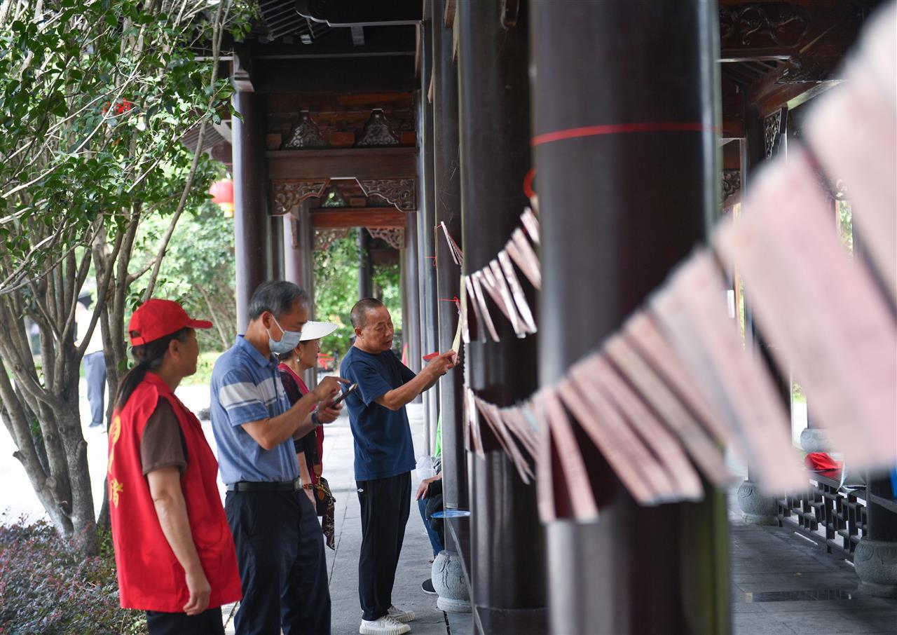 来挂卡片的,大多是孩子的父母。随着来的人越来越多,祥叔建立了相亲群,一个群里人满了,又建一个,冠名黄冈一线牵公益相亲志愿服务队。和祥叔一样热心的一共有十多个人,他们有两个身份:相亲者,志愿者。相亲的地点也有了三个:遗爱湖公园临皋春晓风雨长廊、青砖湖公园、宝塔公园。