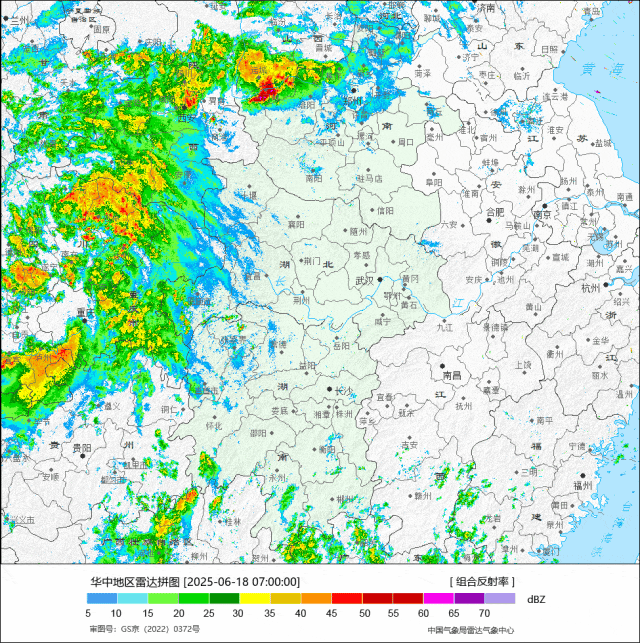 6月18日20时-19日08时,鄂西南阴天有大雨到暴雨,局地大暴雨;鄂西北南部、江汉平原、鄂东北西部阴天有中到大雨,局地暴雨;其他地区阴天有小到中雨。省内部分地区伴有短时强降水,局地有雷暴大风。最低气温22~25℃,偏南风3到4级、阵风5到7级。