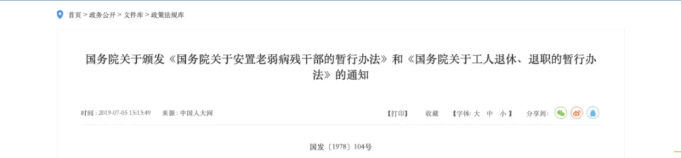 关于这一规定,根据《国务院关于工人退休、退职的暂行办法》