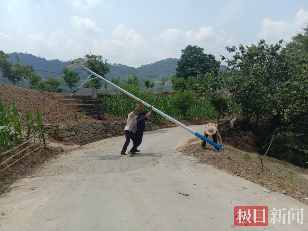 6月初,施工队开进村里,定位、挖坑、立杆、安装太阳能板……崭新的白色灯杆沿着道路整齐排列,成为山村一道亮眼的风景。