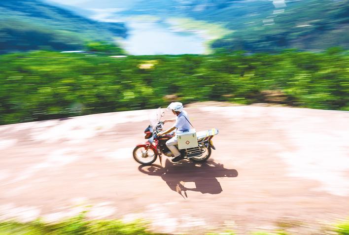 好几次,梅春雷骑着摩托车上山,轮胎在碎石小路上打滑,差点连车带人翻进林子里。这些年,他每年累计在山路上行走6000多公里。