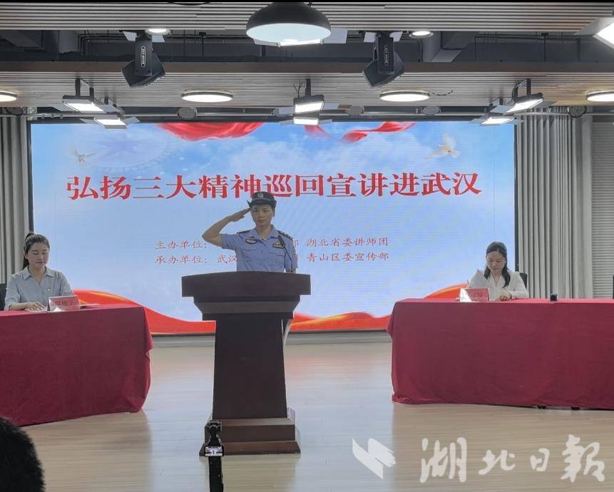 6月23日,省委宣传部、省委讲师团弘扬三大精神巡回宣讲小分队,深入武汉市青山区蒋家墩社区宣讲。作为小分队宣讲员,江珊用自己的亲身经历讲述了抗洪精神的传承。
