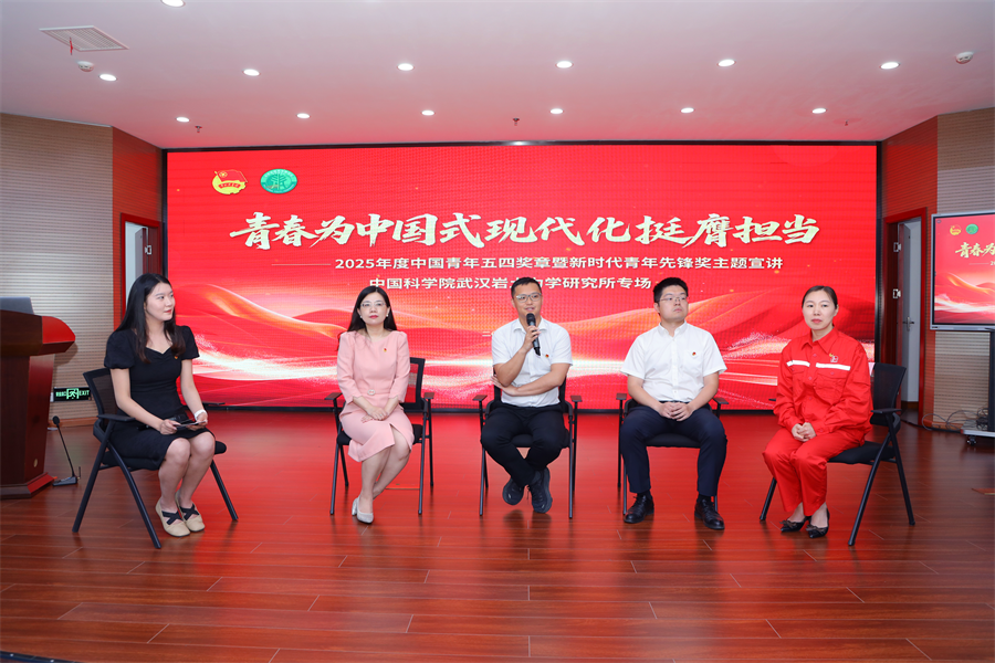 近日,由共青团湖北省委主办,湖北省直机关团工委、中国科学院武汉分院团委、中国科学院武汉岩土力学研究所承办的“青春为中国式现代化挺膺担当”——2025年度中国青年五四奖章暨新时代青年先锋奖主题宣讲活动在中国科学院武汉岩土力学研究所研发大楼四楼学术报告厅举行。