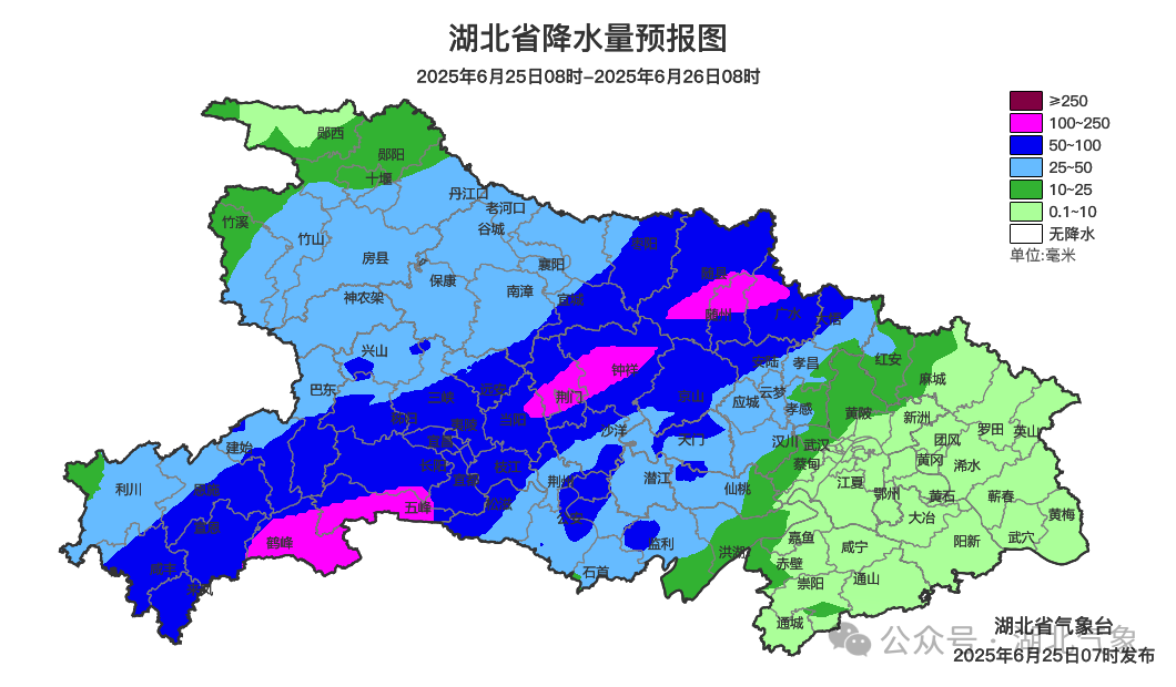 预报来源:湖北省气象台2025年6月25日08时预报