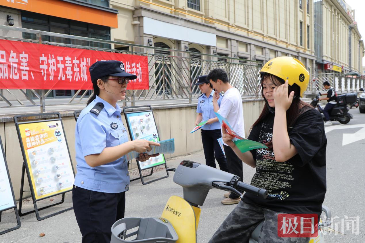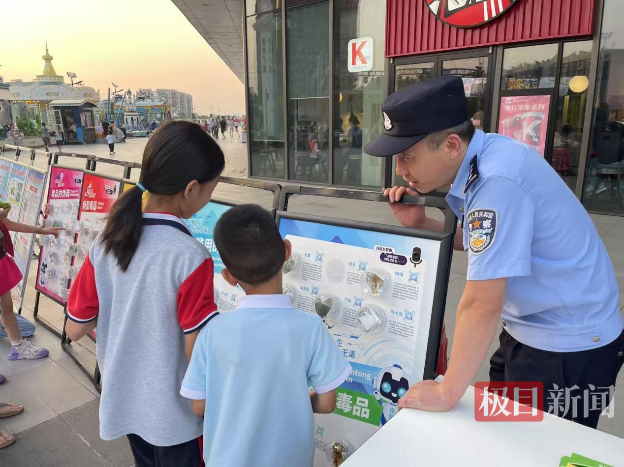 在吾悦广场,活动现场人头攒动,热闹非凡。色彩鲜艳的宣传展板一字排开,图文并茂地展示着禁毒、反诈知识,宛如一本本立体的“安全教科书”;咨询台前,民辅警们热情洋溢,耐心解答群众的疑问,民辅警们化身“安全讲解员”,将仿真毒品模型一一摆开,摇头丸、大麻、“奶茶”毒品、“邮票”毒品……这些形态各异、伪装巧妙的毒品,让围观群众瞪大了眼睛,发出阵阵惊叹。