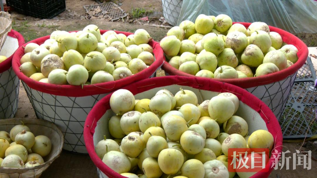 瓜贩张定华说,这个品种很好,荆州城区的社区团购都在卖这个瓜,新鲜采摘的香瓜常常刚出村便被收购商抢订一空。