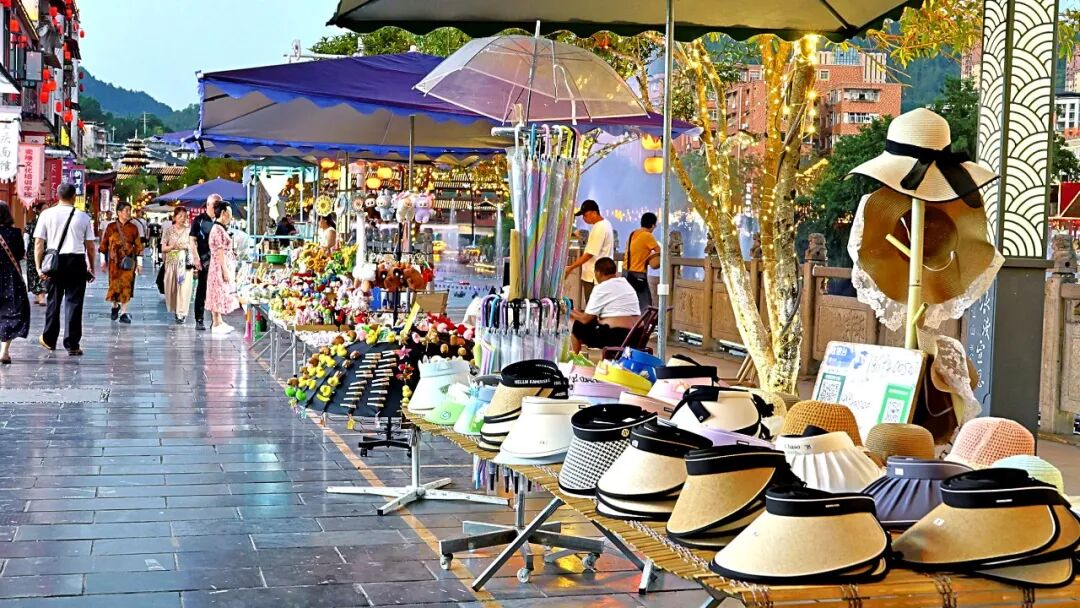 夜幕降临,贡水河两岸华灯璀璨,“一元摊”夜市人潮涌动。冷饮摊、工艺品铺、糖画艺人……此起彼伏的吆喝声中,游客举着手机拍照打卡。“这里有吃有玩,充满生活气息!”大家对此赞不绝口。如今,夜市已带动周边商铺营业额大幅增长,成为宣恩文旅新名片。