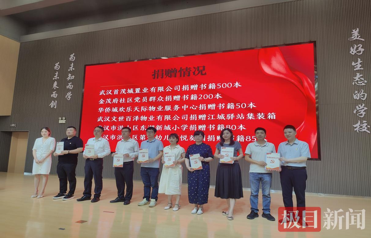 在党建联建与公益捐赠环节,武汉市洪山区东湖新城小学等8家单位签署“悦教先锋·悦居惠民”共建协议。共建单位捐赠江城驿站集装箱及图书900余本,共同传递爱心与温暖。社区“悦聆学院”合唱队带来小合唱《世界赠予我的》,传递着幸福与感恩。最后,全场起立齐唱《歌唱祖国》,将活动氛围推向高潮。
