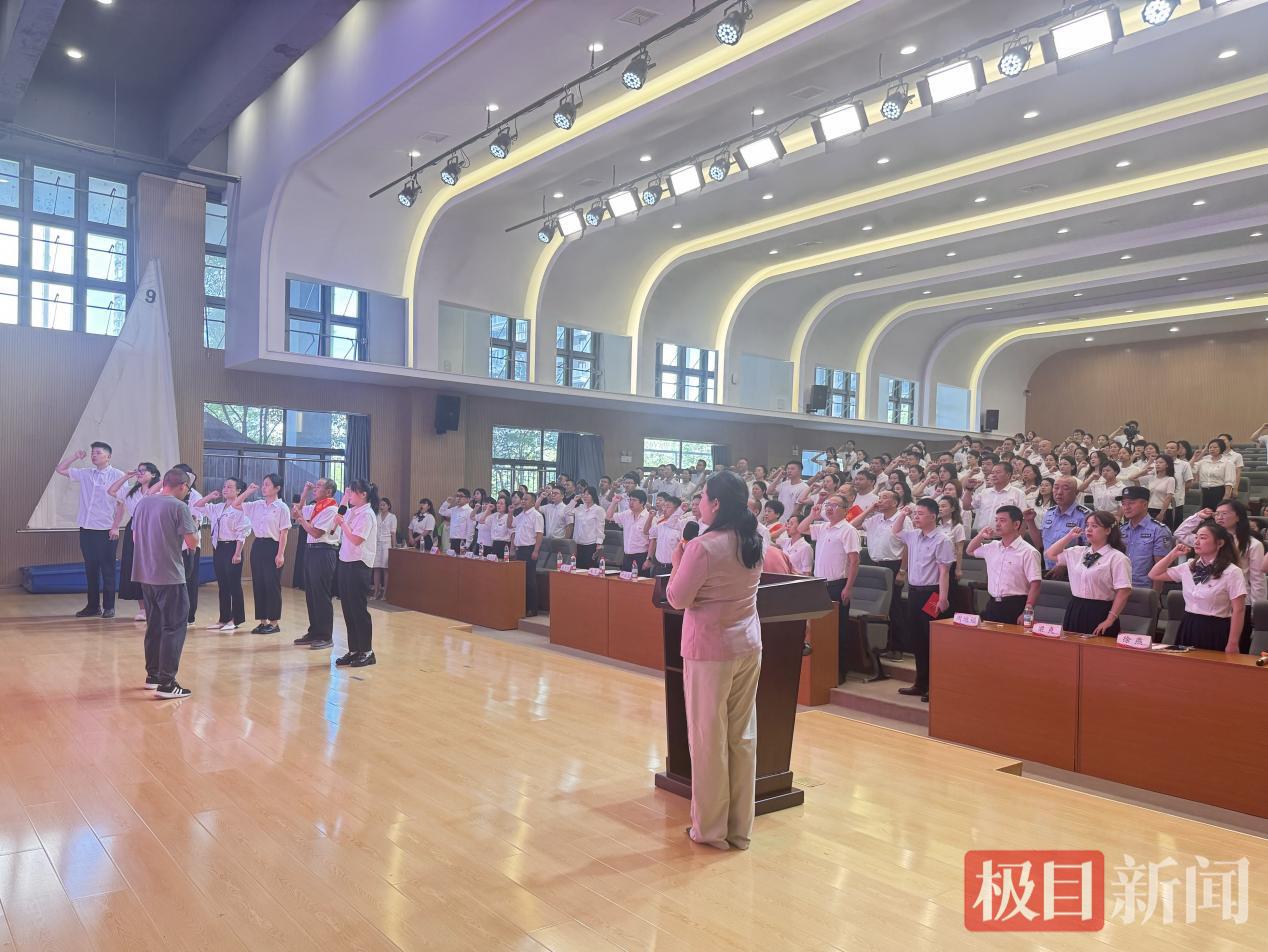 为庆祝中国共产党成立104周年,6月30日上午,洪山区和平街道金茂府社区于东湖新城小学隆重举办“光荣在党50年”纪念章颁发仪式暨“悦教先锋·悦居惠民”党建联建主题活动。洪山区领导、街道班子成员、社区老党员、新党员及居民代表共同参与,现场氛围庄重热烈。