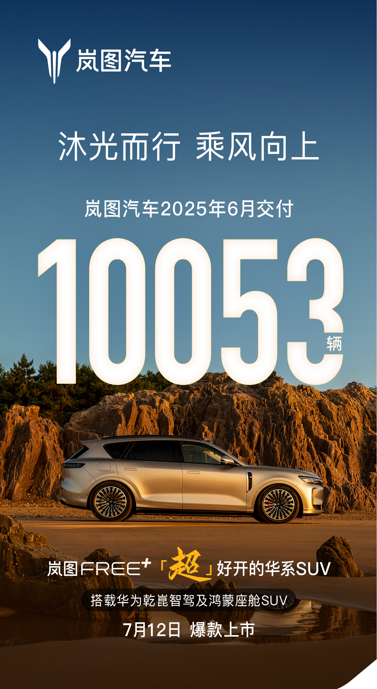 7月1日,岚图汽车公布上月销量数据。6月,岚图汽车单月销量达10053辆,同比增长83%。1-6月,岚图汽车累计销量达56128辆,同比增长85%。在高端新能源MPV领域,爆款岚图梦想家站稳冠军。岚图另一款“听劝”的爆款产品,岚图FREE+也在火热预售中。从强势发展势头来看,岚图“智慧 品位 信赖”的品牌形象已经赢得新时代中坚力量认可,正在全面巩固夯实央国企高端新能源第一品牌地位。