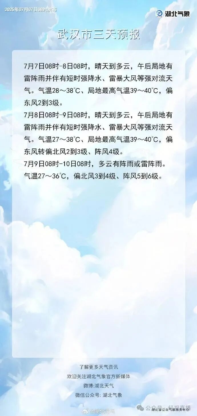 另据武汉气象消息,9日受台风外围气流影响,北风加大、高温较前期略有缓和,但外出仍需做好防雨防暑防晒准备