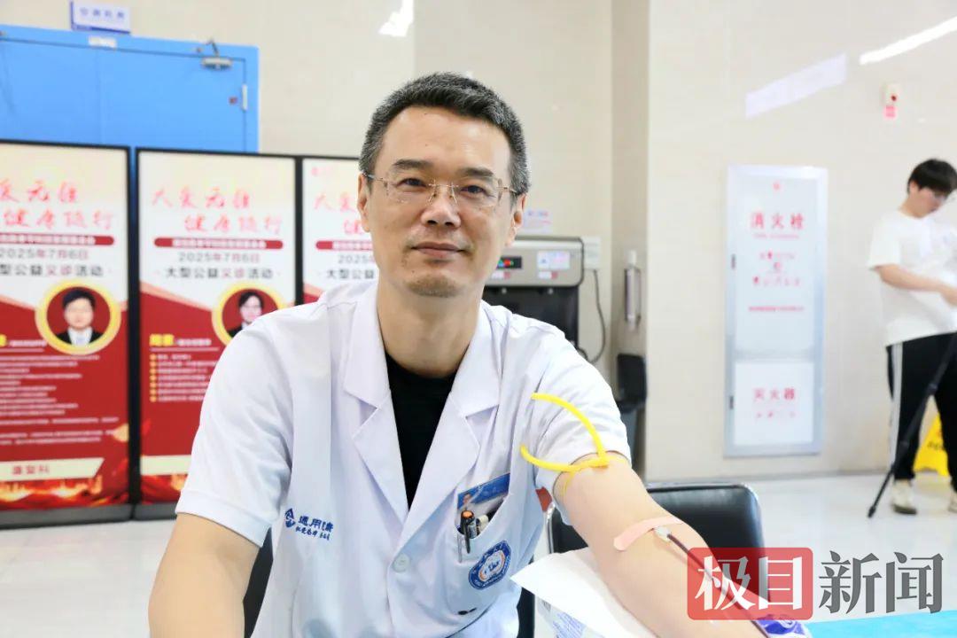 普外科主任医师任柏勇刚查完房就赶来献血。面对“工作繁忙为何还坚持献血”的疑问,他坚定地表示:“手术刀能治病救人,热血同样可以点亮生命。希望通过我们的实际行动,消除公众对献血的误解,让更多人加入献血者行列。”