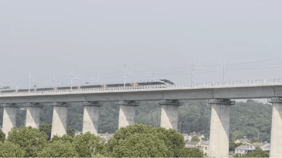 6月12日上午8时08分,全球最快高铁CR450AF通过沪渝蓉高铁武汉至宜昌段龙泉河特大桥。