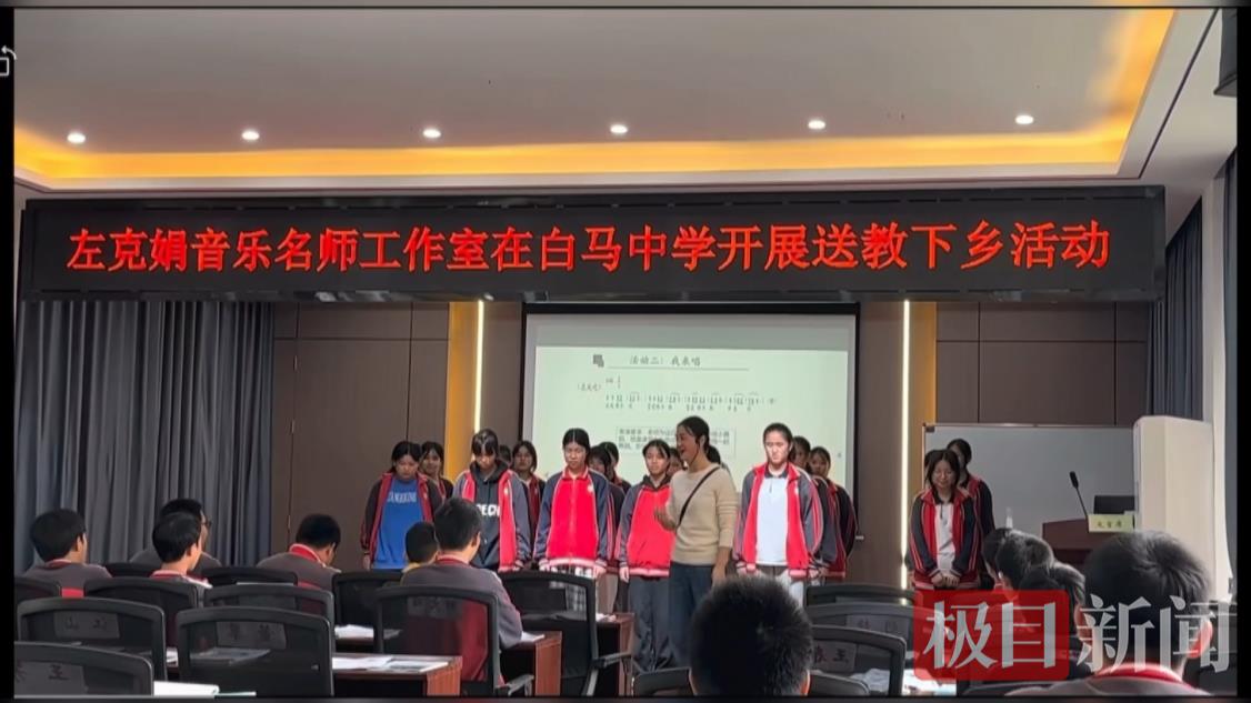 送教下乡,优质资源惠乡村。在湖北省江陵县白马中学的课堂上,左克娟委员工作室成员正通过生动的情景表演,为同学们演示音乐剧,带来一场沉浸式的“音乐盛宴”。