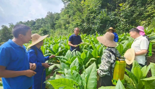 7月9日,在长阳土家族自治县榔坪镇烟区烟田里,工人们正忙着给烟叶进行集中打顶。“烟叶打顶要根据烟株长势,在花蕾以下3片叶处将烟秆折断,同时抹去整株的烟芽,及时滴上抑芽剂。”科技特派员覃江文穿梭在烟田中,手把手进行打顶抹芽指导。