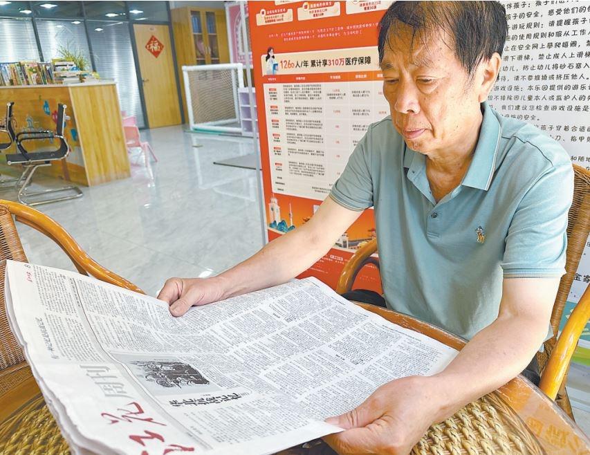 张良成烈士后人张绪东阅读《长江日报》上刊发的抗战故事。记者张衡 摄