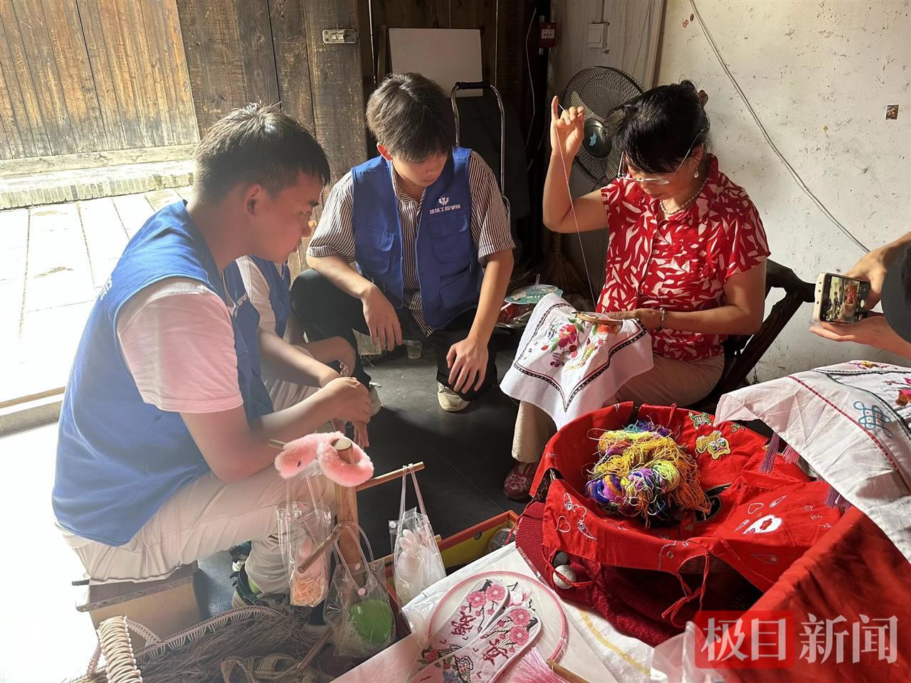 团队还深入探访当地刺绣工坊。绣娘指尖翻飞间,花鸟虫鱼跃然布上。“力道差之毫厘,图案便失之千里。”学生王溪在体验后惊叹。队员们发现,刺绣与古建修复异曲同工——皆需以敬畏之心延续文明基因。一幅幅绣品凝结的不仅是技艺,更是地域生活的情感密码,为古镇文化生态补全了活态传承的重要拼图。