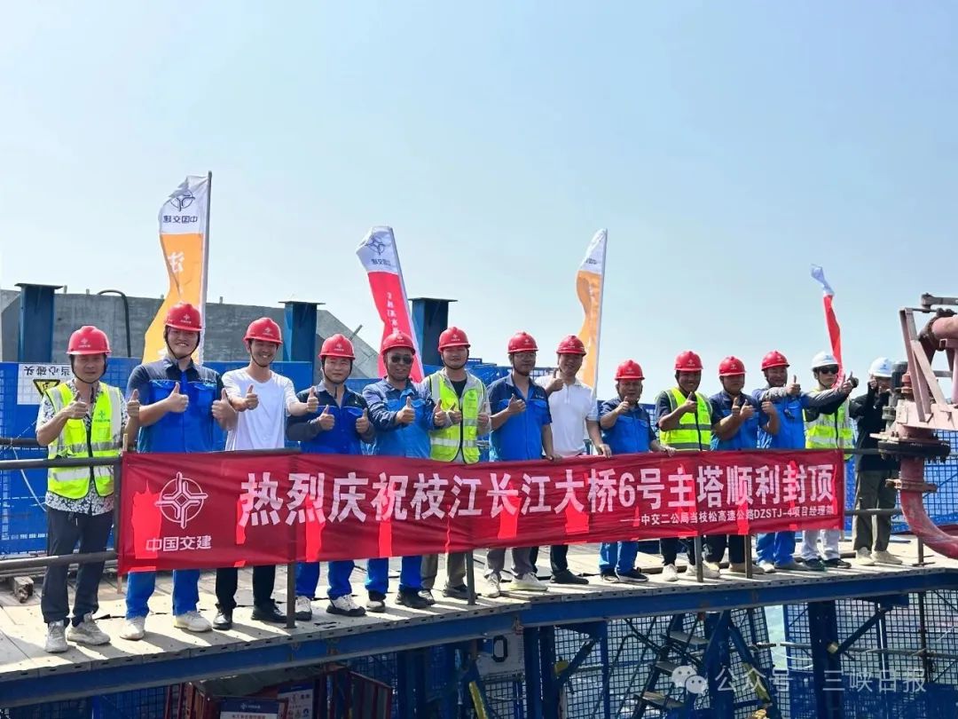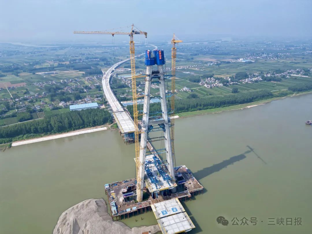 枝江长江大桥南岸主塔顺利封顶