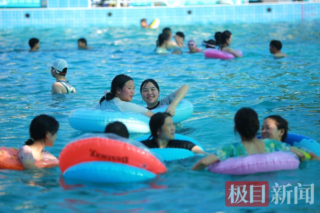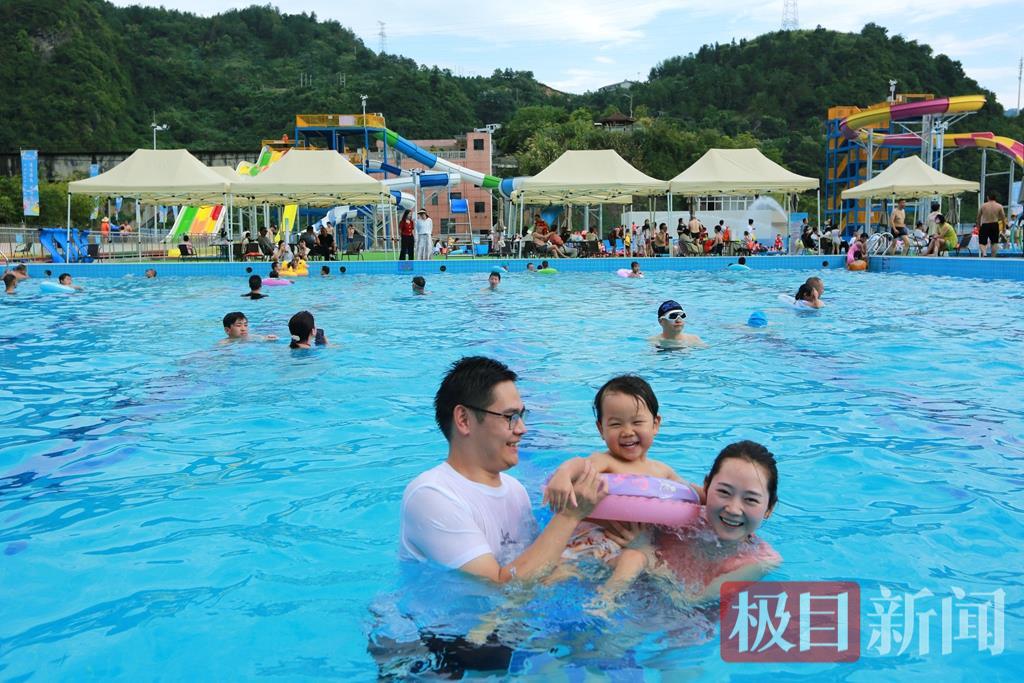 “手掌伸直扣在一起,减少阻力,脚使劲蹬!” 水池里,一位大哥正手把手教两位女士游泳,认真的样子像个专业教练。旁边一对年轻夫妻带着儿子,爸爸指着满池的游乐设施,笑着对儿子说:“你看你多幸福,一放假就来这儿撒欢!” 这娃边点头边往水里钻,溅了爸妈一身水。
