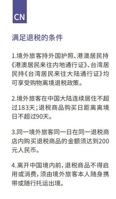 7月,国家税务总局湖北省税务局关于推行境外旅客离境退税“即买即退”服务措施的通告中提到:为进一步提升湖北省境外旅客购物离境退税便利水平,优化境外旅客消费体验,省内部分退税商店推行境外旅客购物离境退税“即买即退”服务措施(以下简称离境退税“即买即退”)。