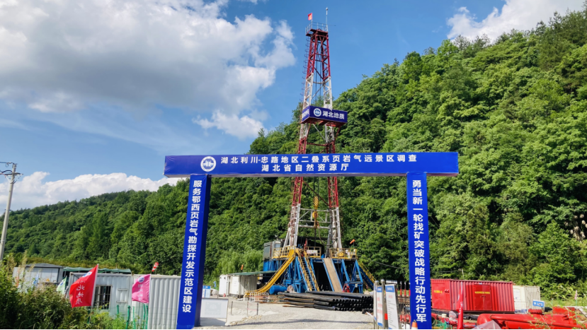 该项目鄂利页2井在钻探至2400米深的二叠系大隆组时,揭露厚度达22.3米的高含气量页岩层,现场解吸结果显示,岩石含气量1.98~5.67立方米/吨,平均3.69立方米/吨。这是湖北省自鄂西花果坪复向斜二叠系大隆组探获页岩气之后,在新区利川复向斜取得的又一重要进展,成功将页岩气勘探深度从中浅层(500~2000米)推向中深层(2000~3500米),拓展全省页岩气资源战略空间。基于现有工作成果,初步圈定利川盆地及周缘地区二叠系大隆组页岩气有利区面积近1000平方千米,初步预估可新增页岩气资源量近5000亿立方米。