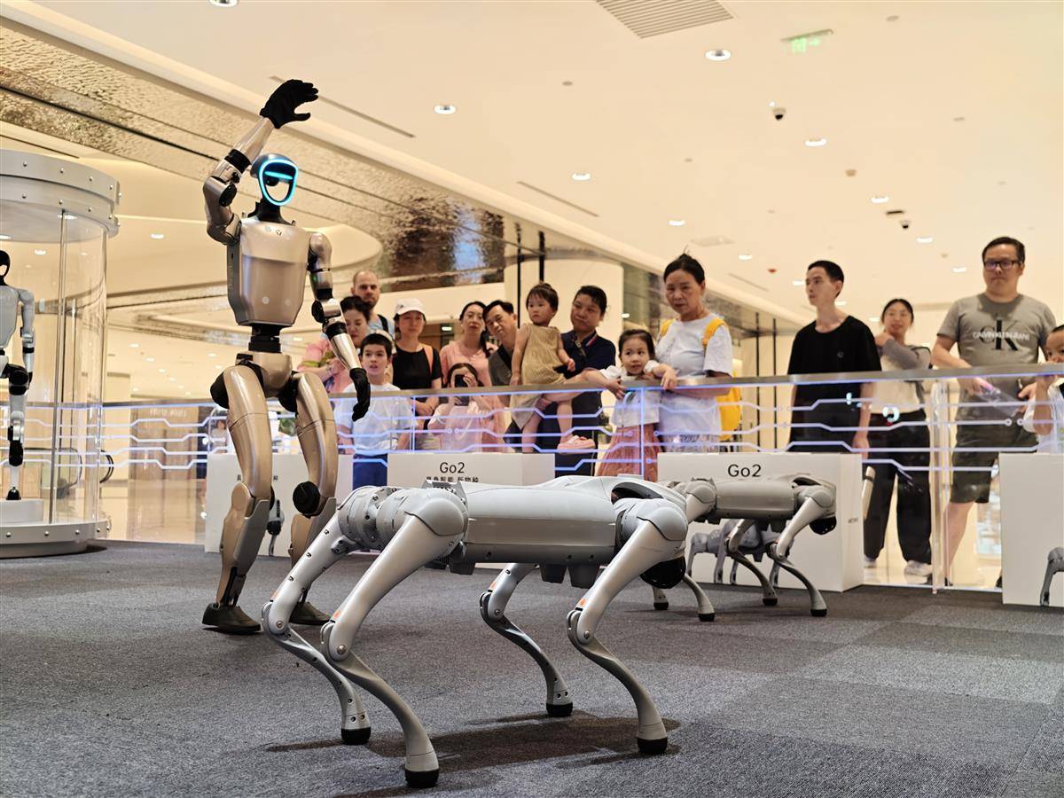 昨日,华中地区首家宇树科技官方授权体验店在武汉武商MALL正式开业,标志着尖端智能机器人加速走入武汉家庭消费市场。7月21日,记者在体验店看到,两只灵动机械狗与仿生人形机器人同台演绎科技之舞,引得展台四周观众围观,人气火爆。