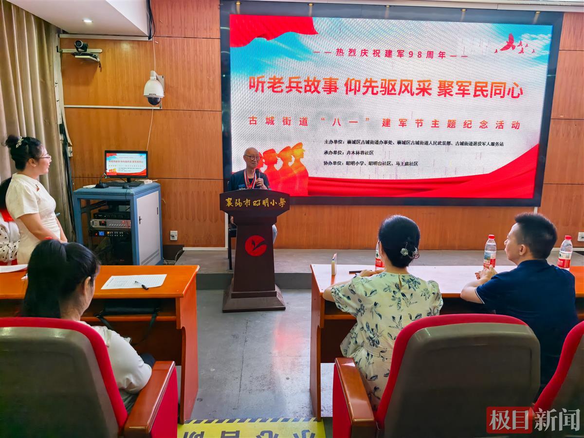 为庆祝中国人民解放军建军98周年,赓续红色血脉,弘扬伟大抗战精神与光荣革命传统,7月29日,湖北省襄阳市襄城区古城街道办事处、古城街道人武部、退役军人服务站联合襄阳市昭明小学,举办“听老兵故事 仰先驱风采 聚军民同心”主题纪念活动。